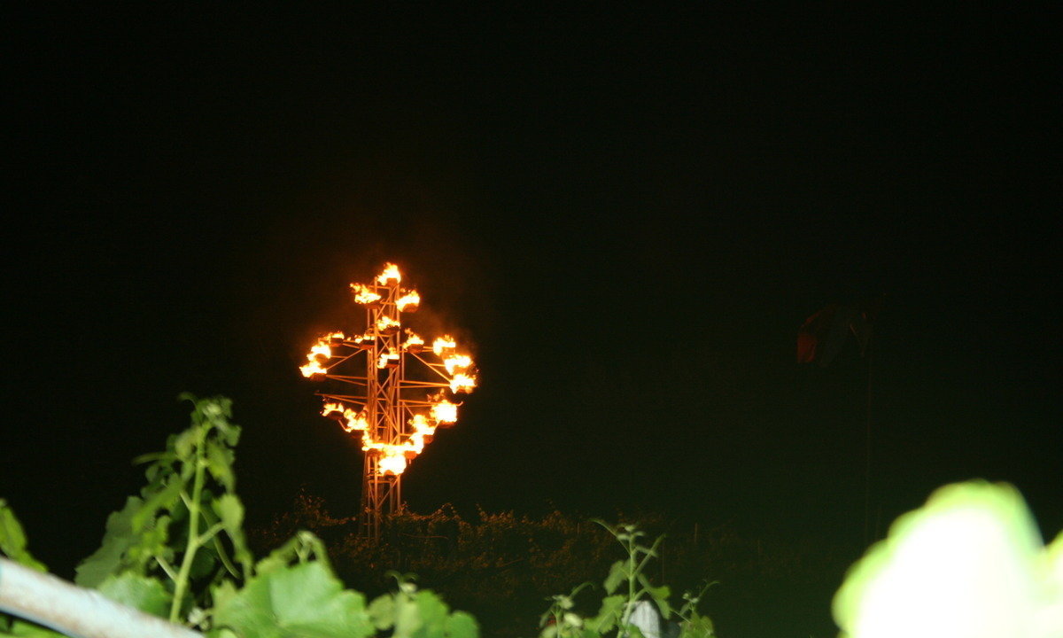 Am Segenbühel über der Stadt Meran konnten die Meraner Schützen auf einem Hanggrundstück der Schützenfamilie Folie ein hohes metallisches Kreuz mit der eingebauten Form eines Herzens – mit Schüsseln für eine Befeuerung- aufstellen. Jährlich zünden nun die Schützen am Herz-Jesu-Sonntag hier die traditionellen Herz-Jesu-Feuer, gut sichtbar für die Meraner Bevölkerung, an.